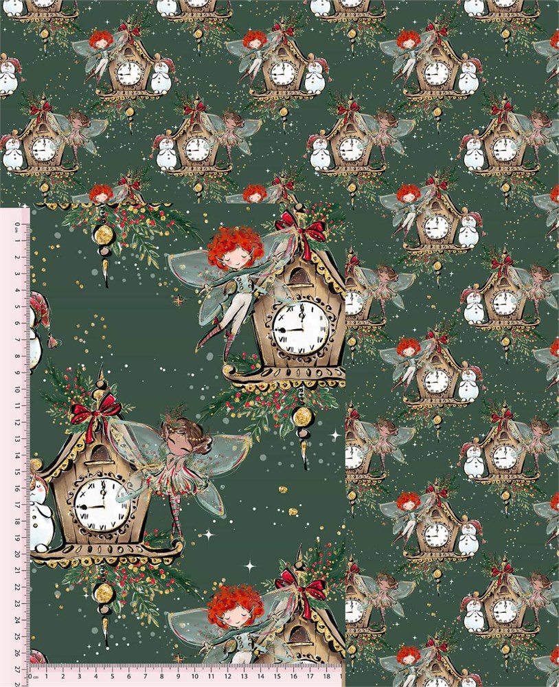 Сатин ФЕИ И ЧАСИКИ. Зеленый фон